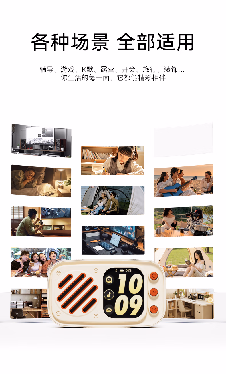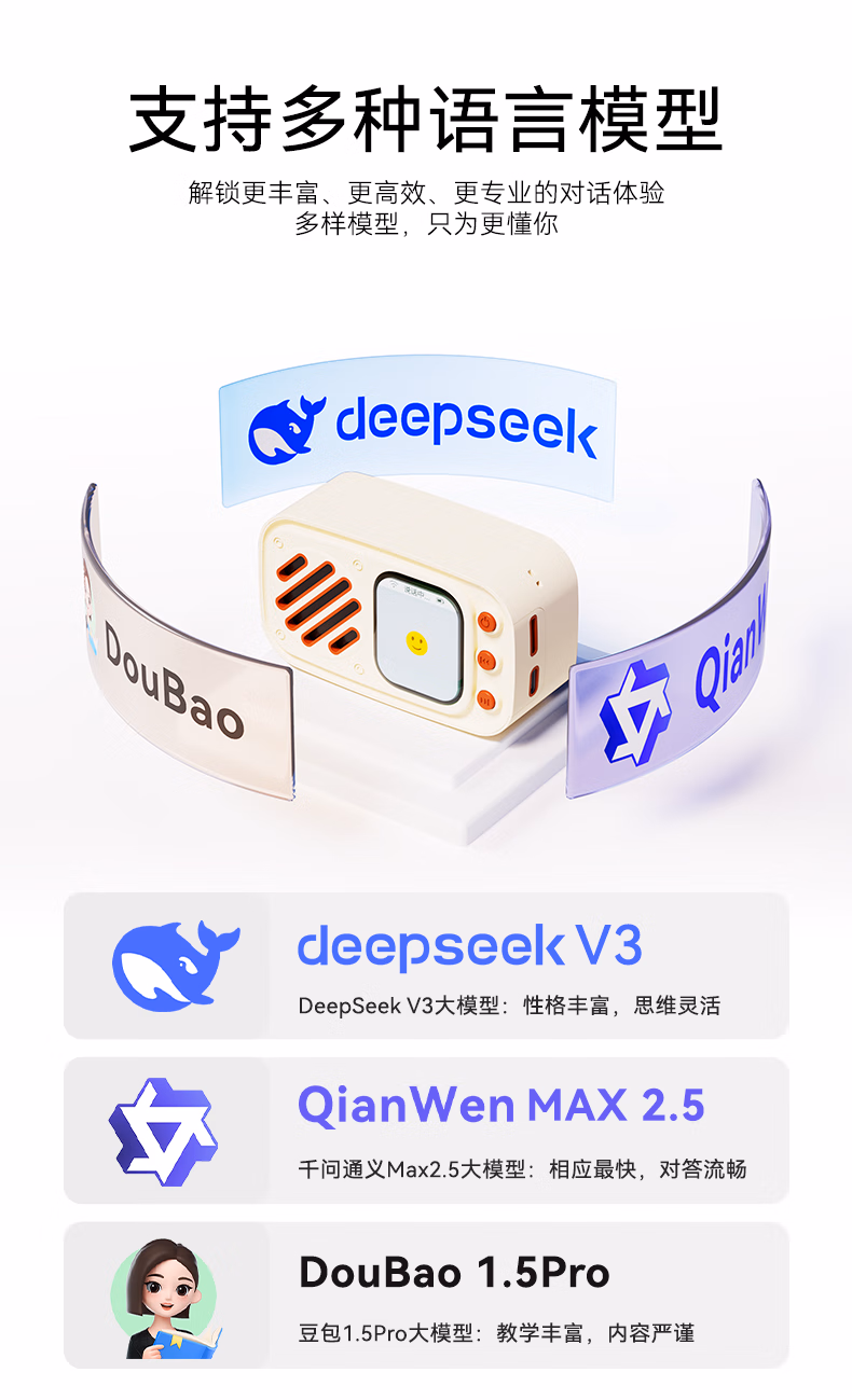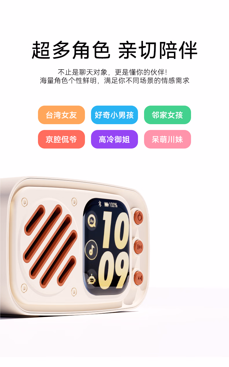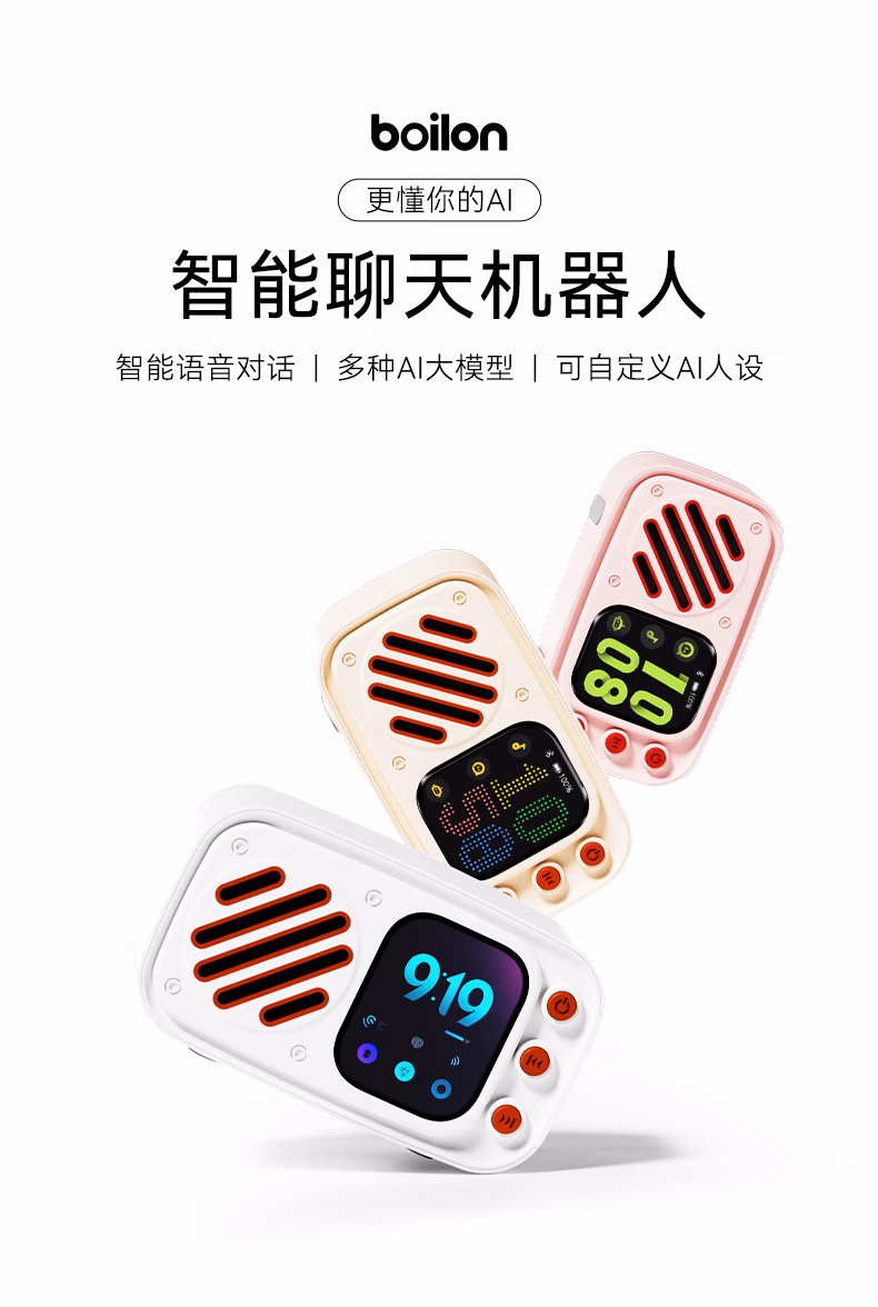 博亿朗AI小音响智能机器人DeepSeek豆包多个大模型语音对话随身便携AI小智音响 白色【语音交互+永久免费】