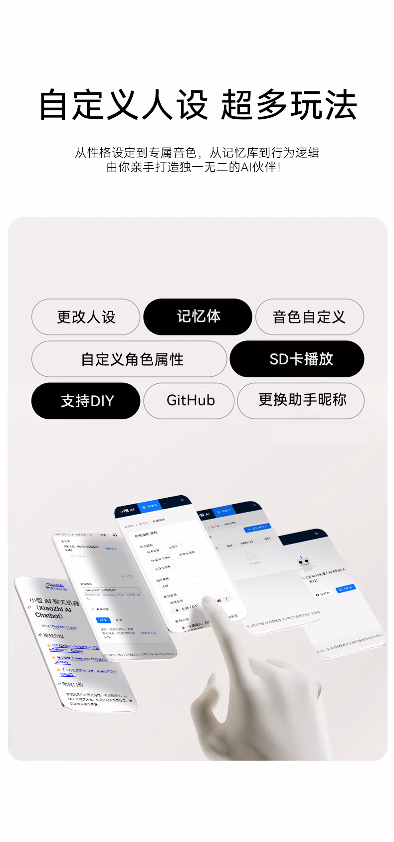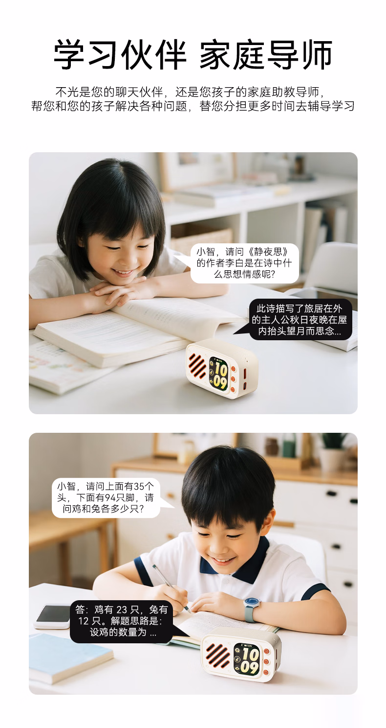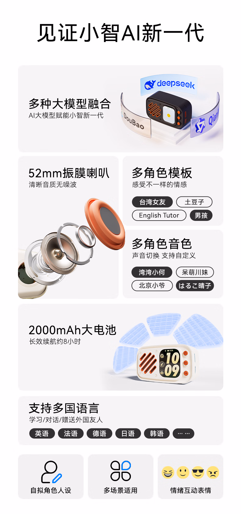 博亿朗AI小音响智能机器人DeepSeek豆包多个大模型语音对话随身便携AI小智音响 白色【语音交互+永久免费】