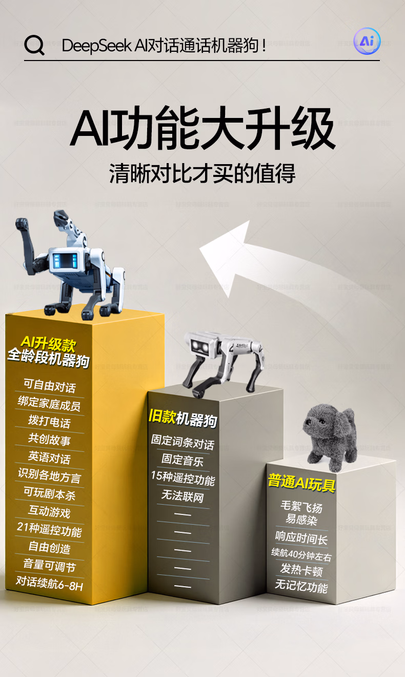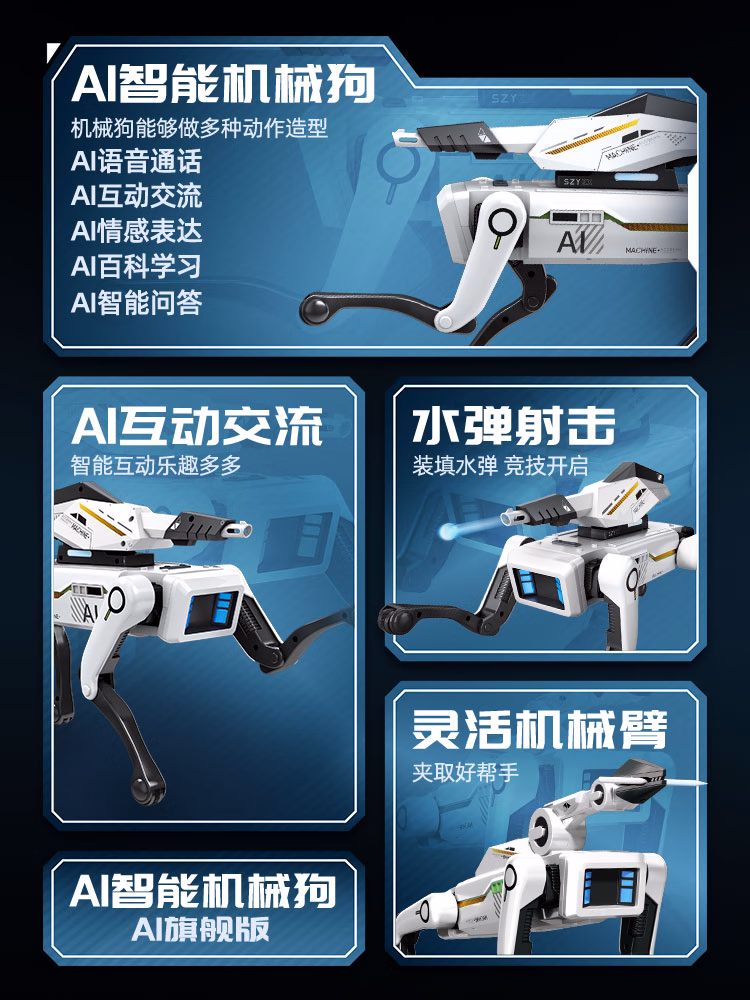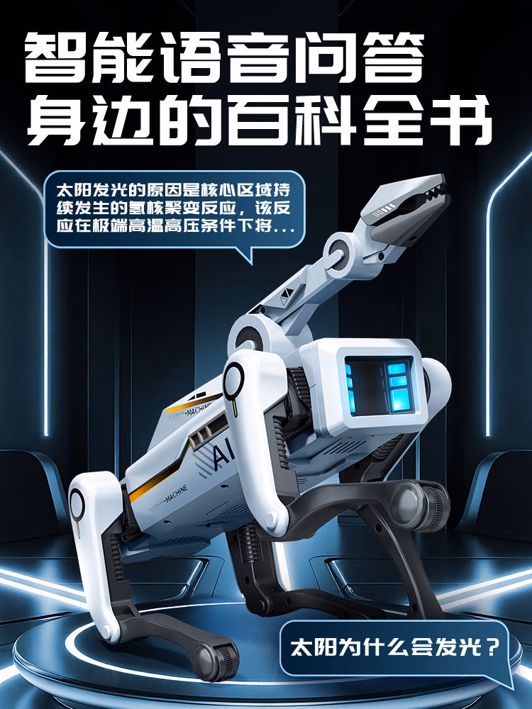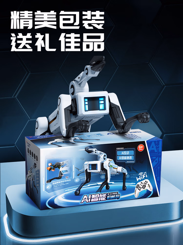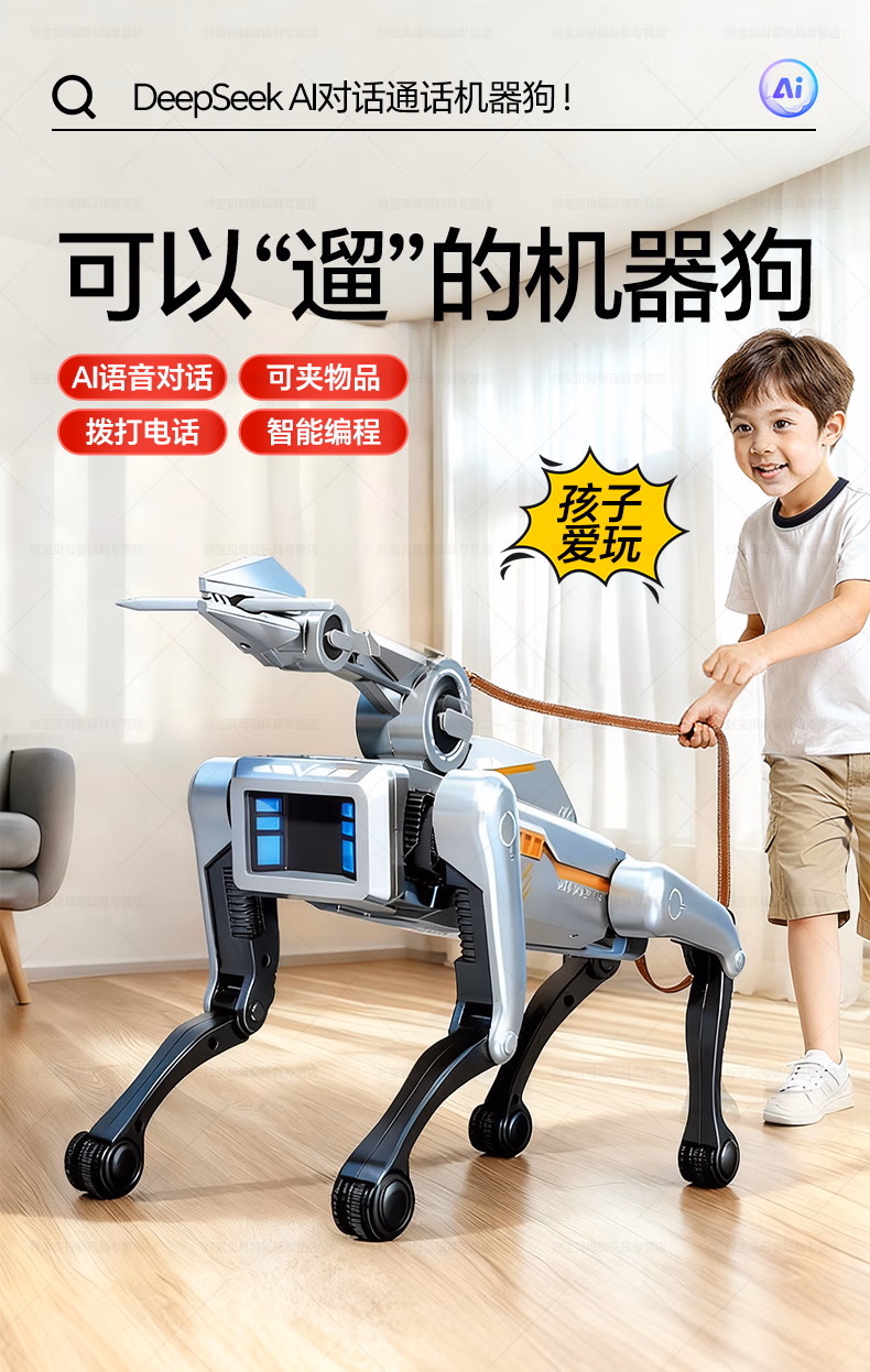 可优萌deepseek智能机器狗儿童玩具6-10岁黑科技机器人男女孩子生日礼物 DeepSeek+打电话【AI升级版+牵绳遛狗+夹物机械臂】 人工智能对话机器人高档实用礼盒